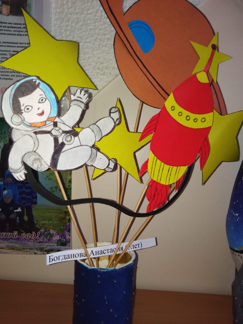 11 апреля 2023 года, в преддверии Дня космонавтики, в МБДОУ д/с "Рябинка" прошла выставка детских творческих работ, посвящённые праздничной дате, целью которых было приобщение детей к удивительному миру космоса. При этом решались воспитательные, развивающие и образовательные задачи: воспитывать у детей патриотические чувства, чувство гордости за космонавтов нашей Родины; развивать познавательный интерес, любознательность, двигательную активность на игровом материале, речь, мышление, внимание, память, воображение; расширять знания детей о мире космоса, космонавтах, формировать умения по отражению своих знаний и впечатлений в художественной продуктивной деятельности.