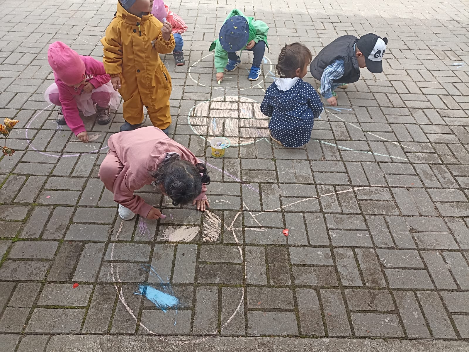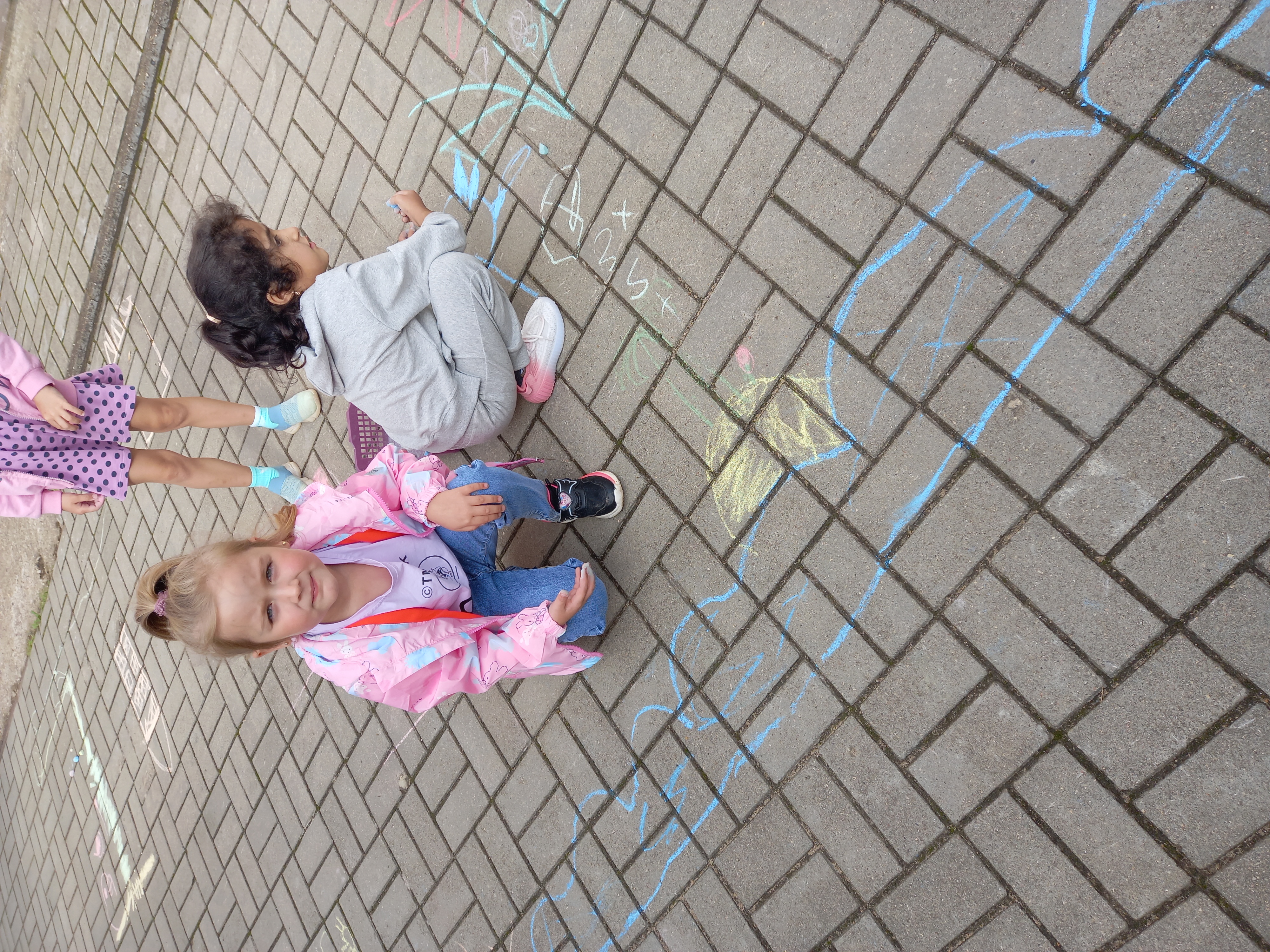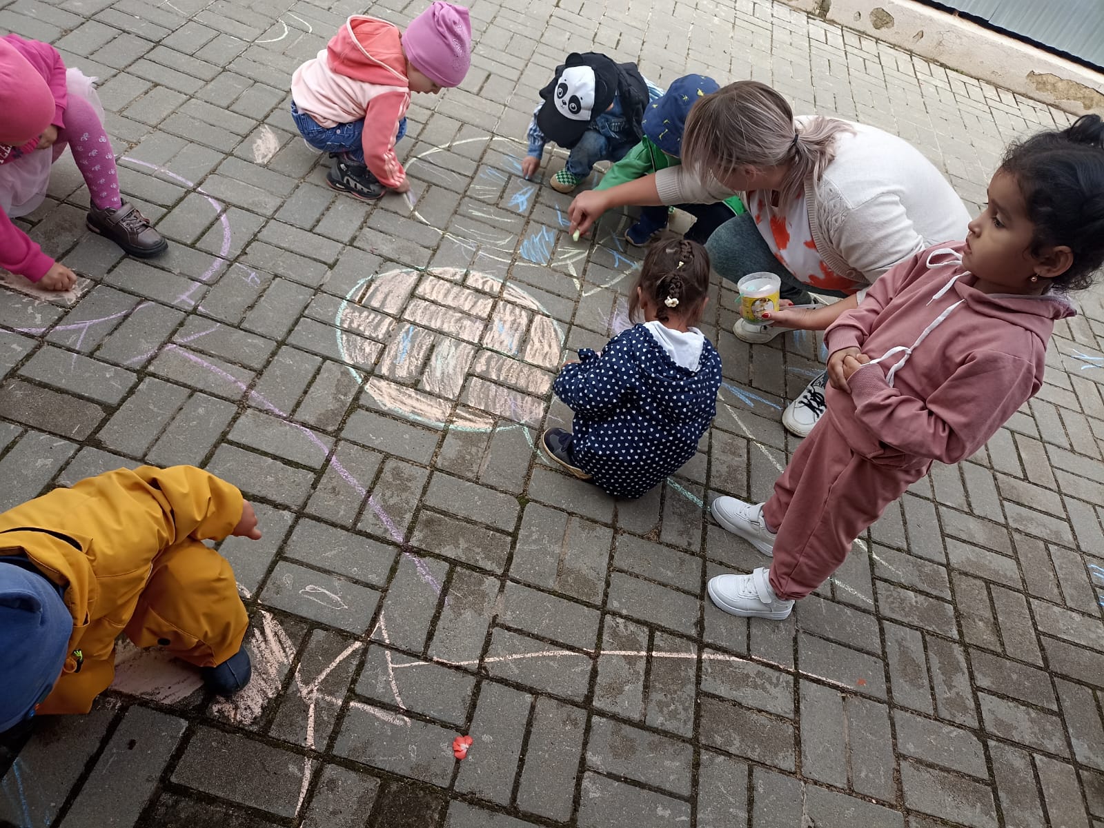 Воспитатели провели физкультминутку с детьми, рассказали множество стихов о лете, солнце, мире и ребята с большим удовольствием принялись за дело. Дети оказались большими фантазёрами и очень творчески подошли к заданию, и через несколько минут на асфальте перед зданием МБДОУ появилась радуга красок. Юные художники рисовали огромное солнце, море, пальмы, голубей, сказочных героев популярных мультфильмов и принцесс. И рисунки получились сказочными, яркими, а главное добрыми. Праздник подарил множество положительных эмоций деткам и взрослым, а рисунки на асфальте продолжают радовать прохожих.