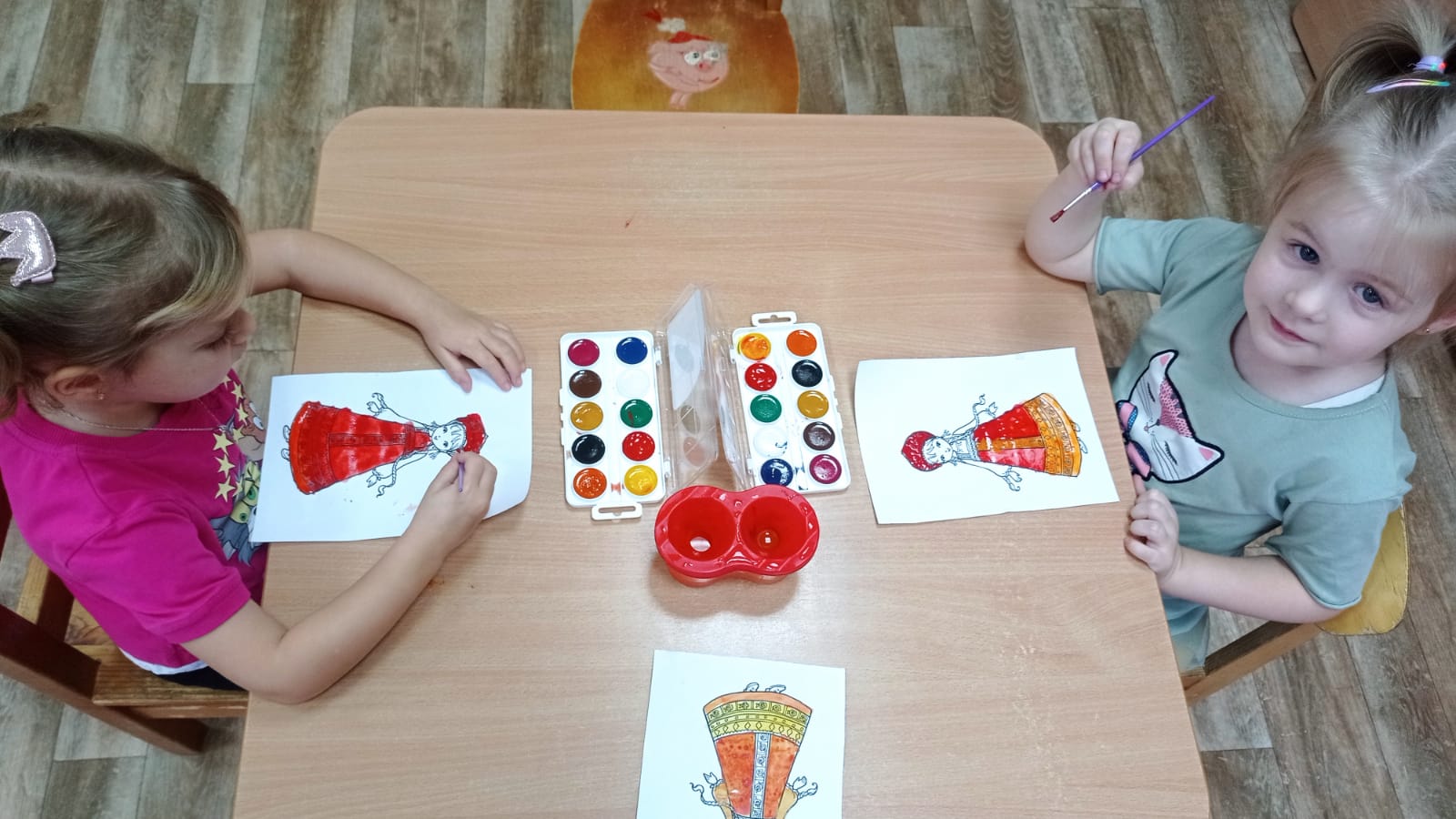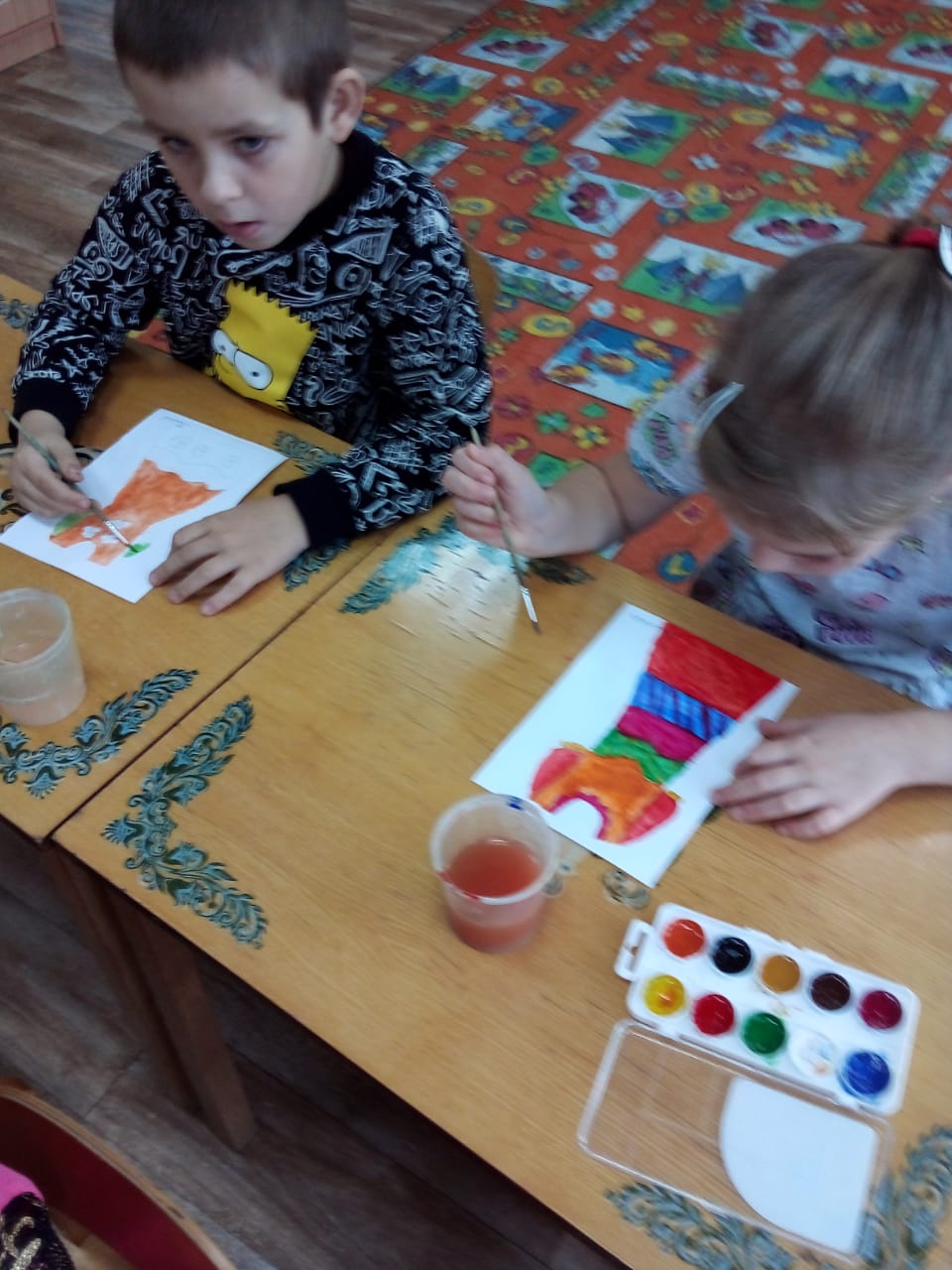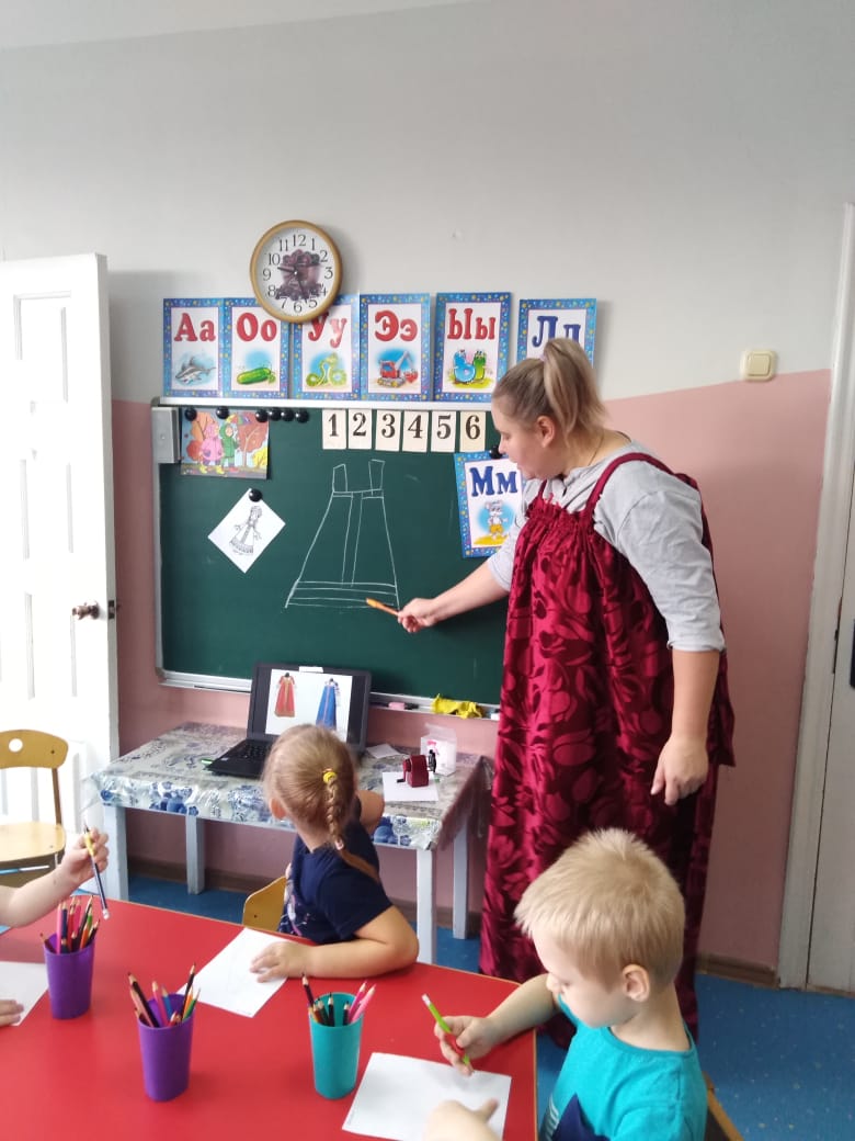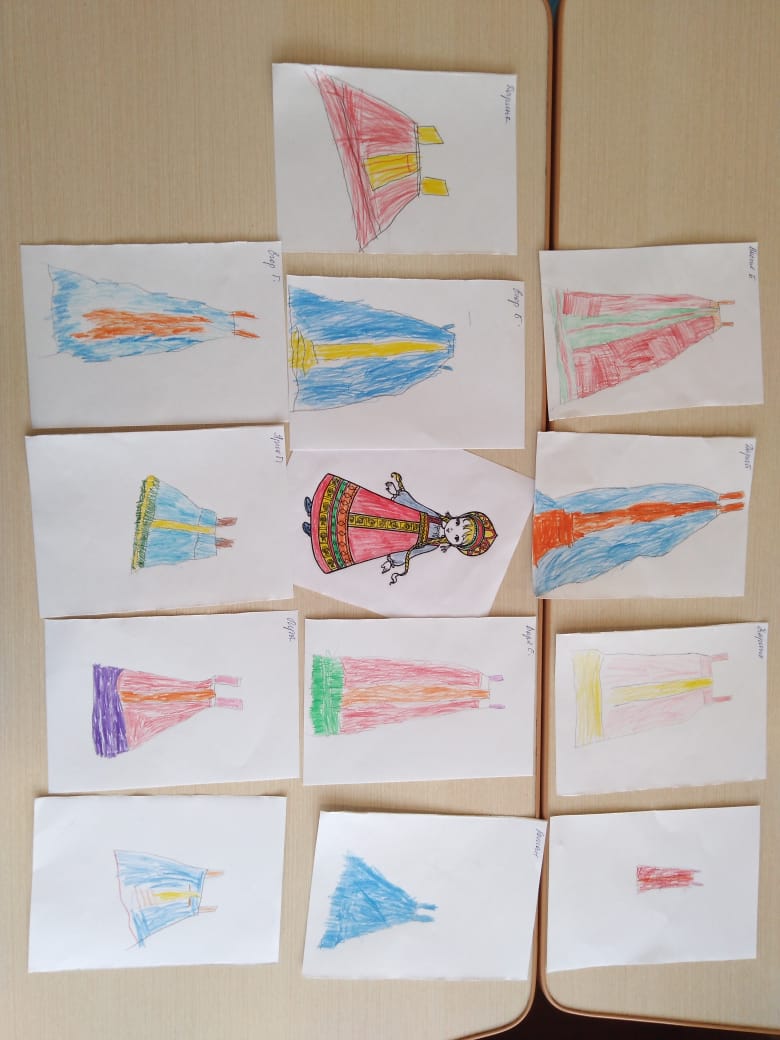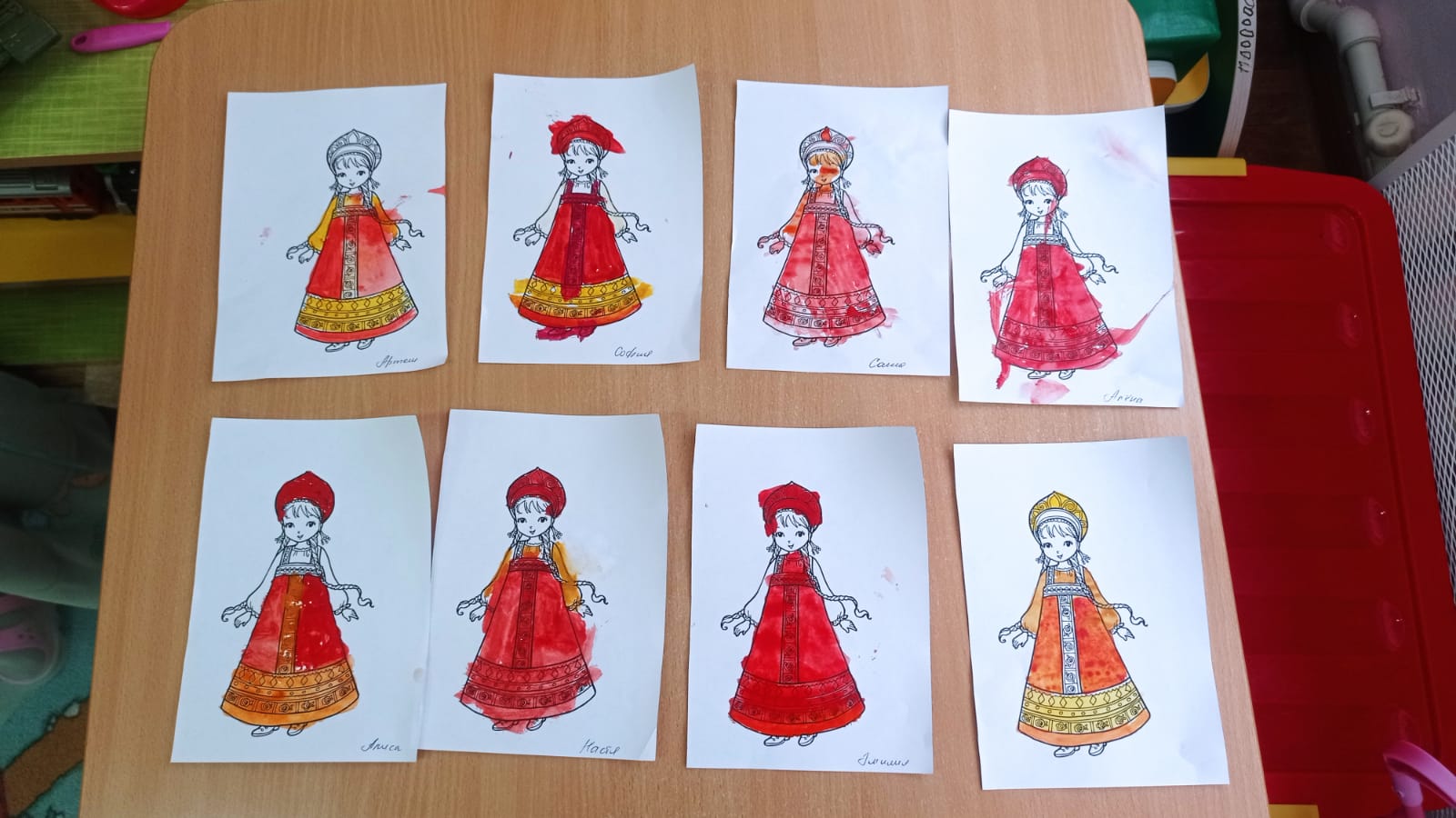Мы постарались донести до детей значение слов "дружелюбие" и "взаимовыручка", желание помогать друг другу, быть терпимыми и уважать интересы других. Сила России в единении всей наций и народностей, и потому задача нас, взрослых, заложить основы дружеских отношений в сердца наших детей с ранних лет. В конце занятия дети познакомились с русским сарафаном, нарисовали его и раскрасили.