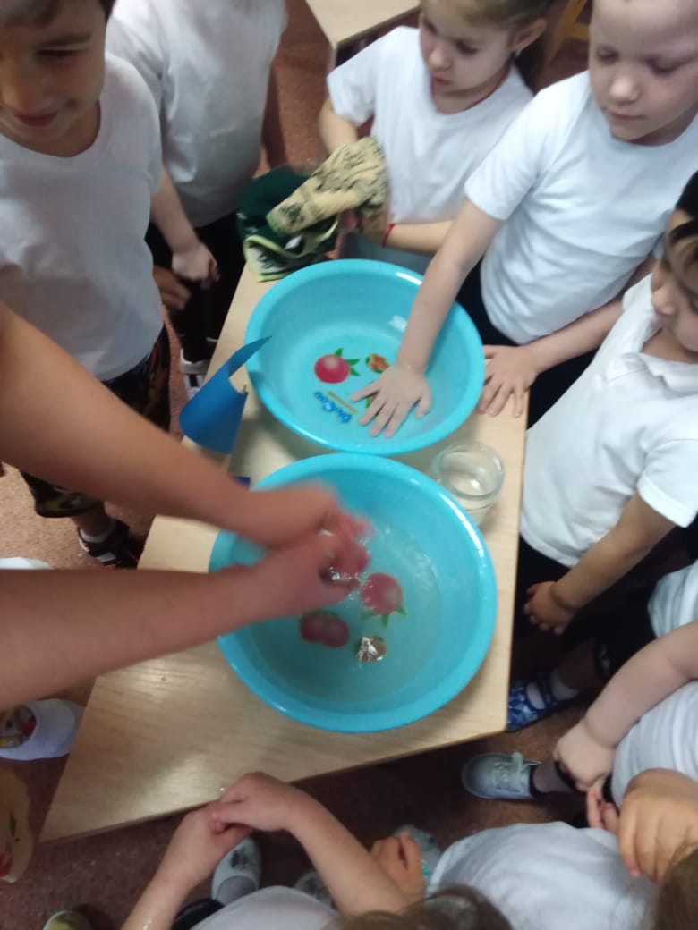 Для начала ребята постарались определить, что представляет собой вода. Исследовав её, они пришли к выводу, что это жидкость, не имеющая вкуса, запаха и цвета.
