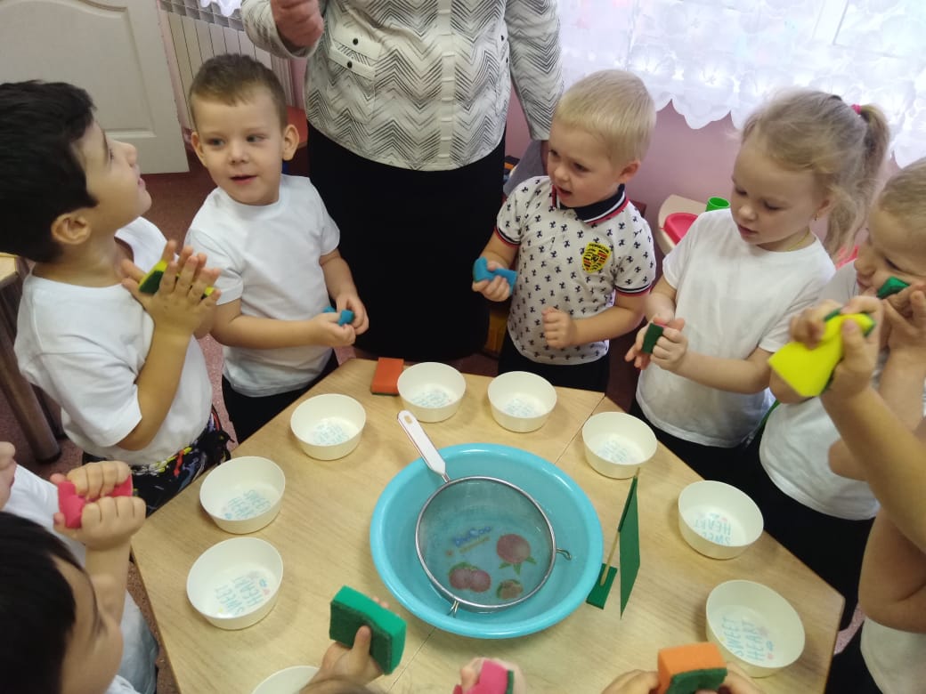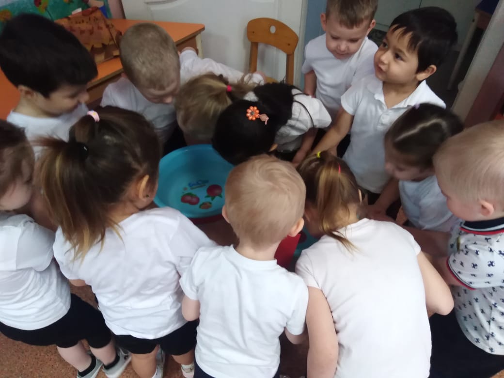 Также воспитанники не забыли о пользе воды и её важности для всего живого. Ребята с удовольствием рассуждали на темы "В чём содержится вода", "Что было бы, если вода пропала", "Откуда берутся дожди", играли в игры "Лови капельку", "Хлопай/топай" и отгадывали тематические загадки.