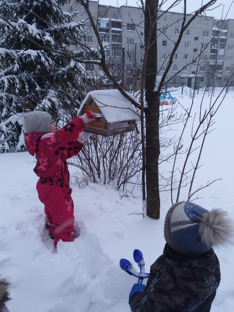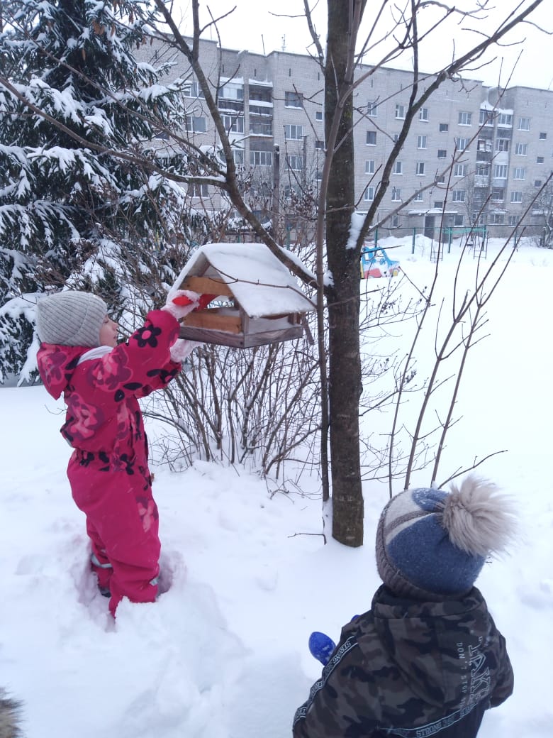 Наши детки вместе с воспитателями решили помочь птичкам, которым так тяжело в зимнее время найти себе корм.