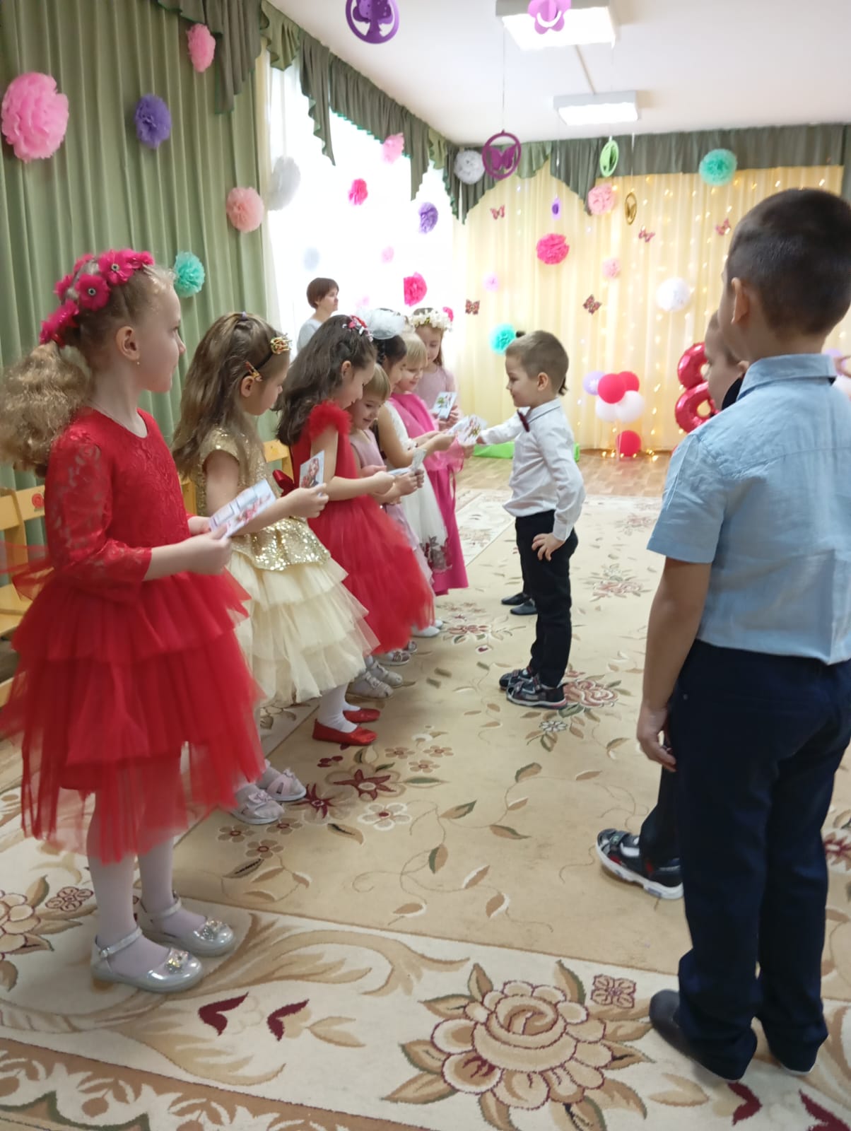 В преддверии Международного женского дня 8 Марта в МБДОУ д/с "Рябинка" прошли утренники, посвящённые этому празднику. Воспитанники средней и подготовительной группы поздравляли своих любимых мамочек и бабушек 6 марта, а старшей – 7 марта 2024 года.