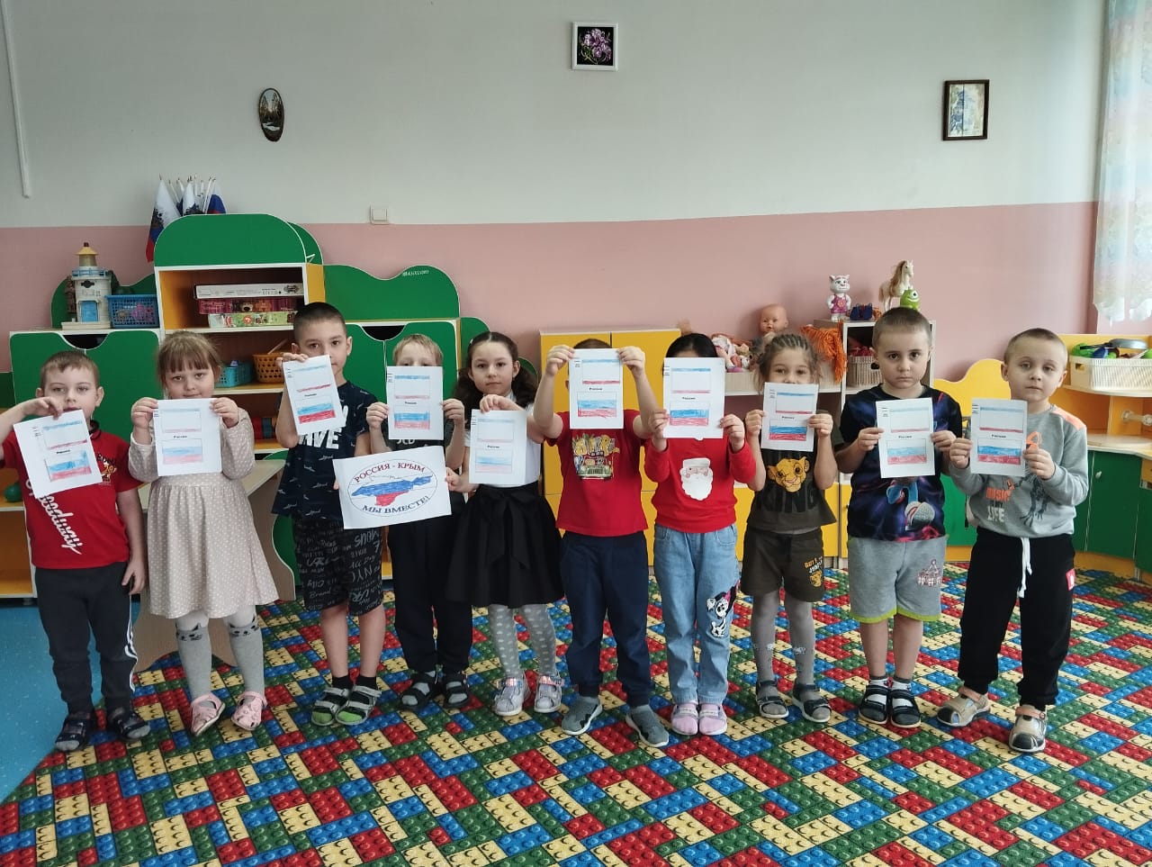 К 10-летию со дня воссоединения Крыма с Россией с целью формирования у воспитанников представлений об истории Крыма, чувства патриотизма, уважения к народам, населяющим Крым, развития интереса к историческим событиям, произошедшим в Крыму 18 марта 2014 года, воспитания гордости за свое Отечество, любовь к своей Родине-Республике Крым, прошло занятие, посвященное Дню воссоединения Крыма с Россией.