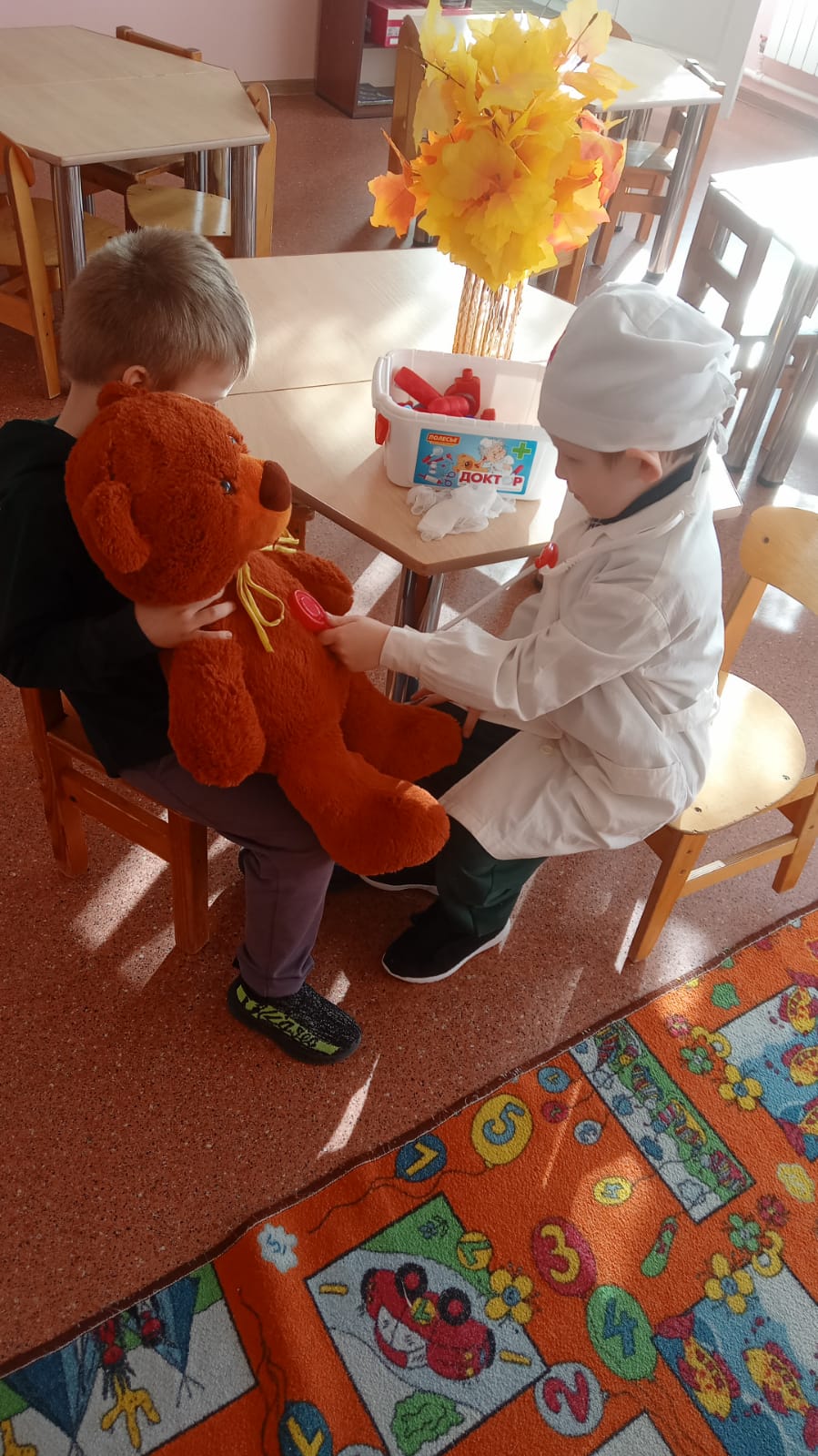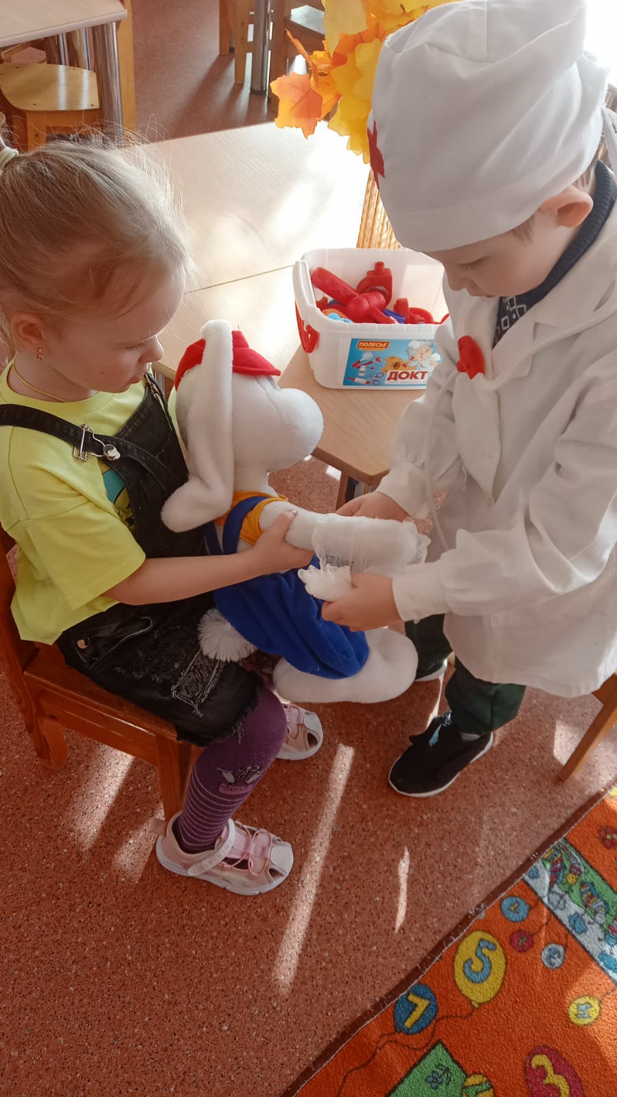 В средней группе одна из любимых сюжетно - ролевых игр - «Больница». Наши сюжетно - ролевые игры проходили под девизом "Все профессии важны, все профессии нужны!" Малыши любят играть в сюжетно - ролевые игры. Особенно им нравится лечить своих кукол. Связано это с тем, что каждый ребенок хоть раз уже болел и ему приходилось принимать лекарство. Детки так вошли в роль врача и стали делать все процедуры. "Если заболело ухо, если в горле стало сухо, не волнуйся и не плачь - ведь тебе поможет врач". Но, когда им прочитали сказки «Доктор Айболит» и «Про бегемота, который боялся прививок», дети начали лечить и животных. В этой игре дети учатся сочувствовать, сопереживать, жалеть, а это такие редкие в наше время качества.