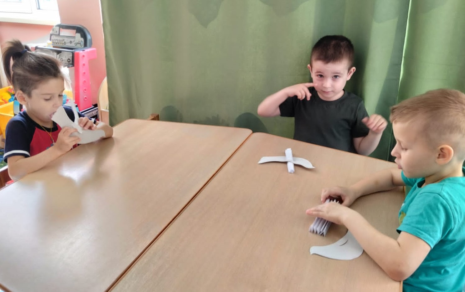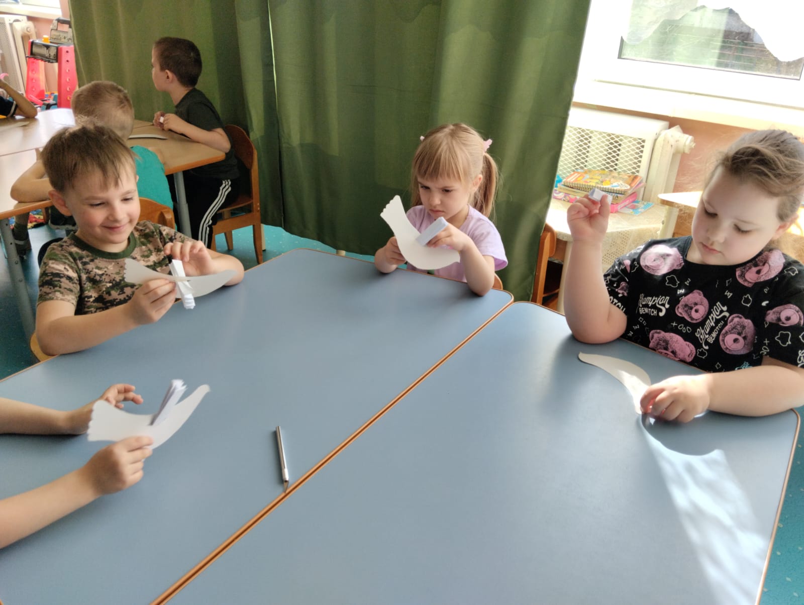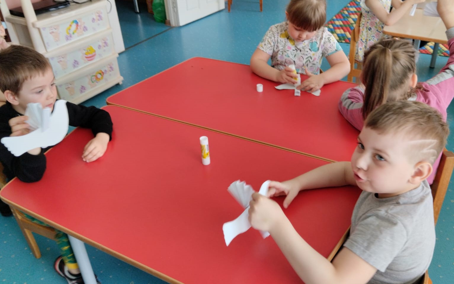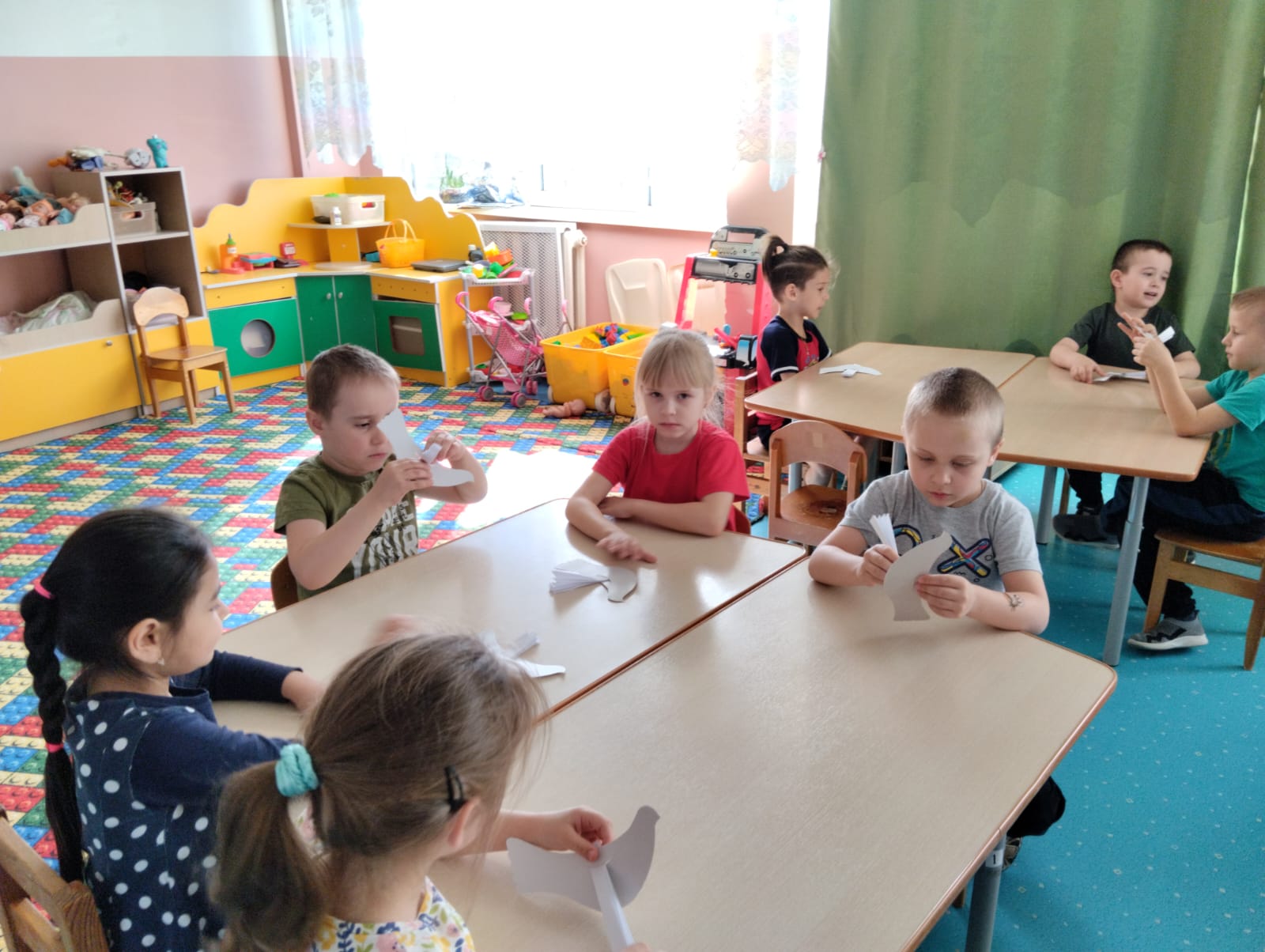 Ребята старшей и подготовительной группы под руководством воспитателей на занятиях изготовили символ мира — белых голубей в технике объемной композиции. У каждого воспитанника получился свой голубь, который, несомненно, станет атрибутом приближающегося праздника.