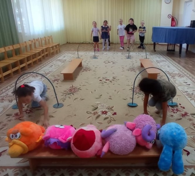В старшей группе прошло спортивное мероприятие "Весёлые старты Смешариков". Программа была довольно насыщенной. Командам были предложены занимательные конкурсы вместе с героями мультсериала: конкурсы с бегом, прыжками, эстафеты с мячами, где они смогли проявить свои спортивные, умственные способности и навыки.